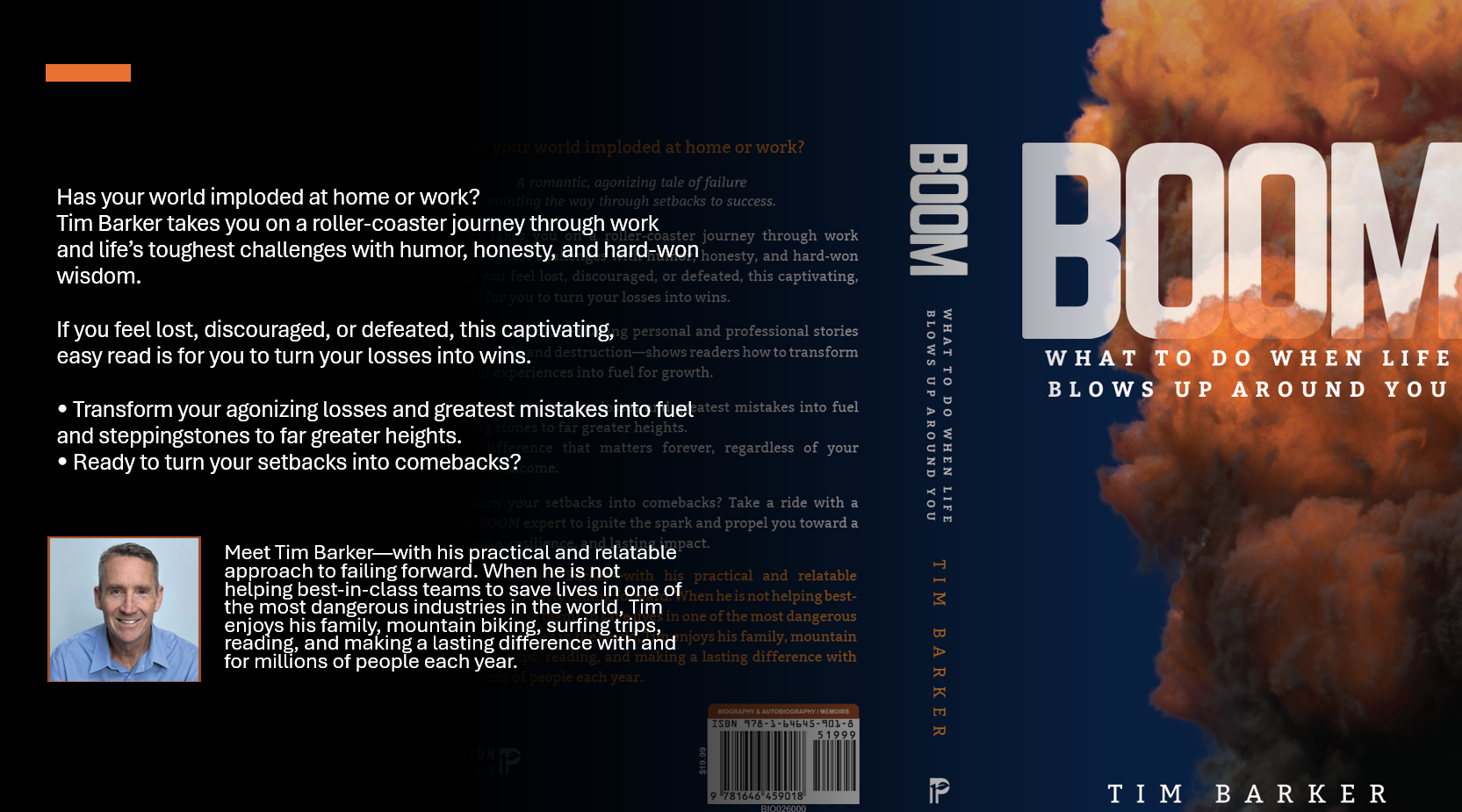 BOOM: What to Do When Life Blows Up Around You is the honest, hope-filled story of Tim Barker—a self-described “average guy” who experienced loss, failure, and collapse in nearly every area of life. But through it all, God was writing a bigger story.